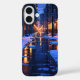 Étonnant étui de téléphone inspiré de dessins animés avec une rue tranquille enneigée de la ville la nuit avec des lumières brillantes et des reflets douillets. Idéal pour un paysage hivernal pittoresque et tranquille.