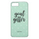 Ce coque élégant est décoré d'un arrière - plan vert menthe tendance avec des pois blancs, et de l'expression "but getter" dans la typographie moderne. Personnalisez avec votre nom.