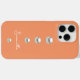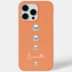 Ajoutez un brin de chaleur et d'élégance à votre téléphone avec ce coque iphone de pêche personnalisé, avec une rangée verticale d'accents de perles lumineuses et un nom personnalisé en écriture blanche délicate. Idéal pour les individus à la mode, les cadeaux de fête de mariée, ou toute personne qui aime le glamour doux avec une touche personnalisée.
