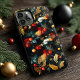 Cet élégant coque iphone présente un design festif avec des ornements de Noël, des branches de pin, des feuilles saints et des flocons de neige contre un arrière - plan sombre et texturé. Ajoutez votre nom pour une touche personnalisée, ce qui en fait un cadeau de vacances parfait. Les mots-clés comprennent coque personnalisé, couverture iPhone de Noël, ornements et design de pin, ciblant ceux qui recherchent des accessoires uniques et festifs.