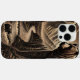 Un ours artisanal en cuir se dresse près d'une rivière calme, entourée d'un paysage montagneux pittoresque.