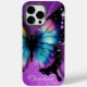 Un papillon à l'aspect glittère foncé sur un arrière - plan de violet. Ce coque peut être personnalisé.