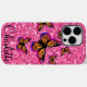 Vibe de fête amusante, parties scintillant pétillante rose Coque-Mate iPhone 14 Pro Max Coque avec artwork original Monarch papillons - la police de texte est personnalisable et la conception est transférable-