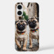 Un adorable trio de chiots carlins explorant le monde avec curiosité et joie.