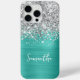Coques Case-Mate iPhone Parties scintillant d'argent Turquoise Nom