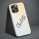 Modern Beach Parties scintillant Girly Chic Personnalisé Nom iPhone 14 Pro Max Smart Phone Boîtes dispose d'un jaune et doux bleu ombre arrière - plan parties scintillant avec votre nom personnalisé dans élégante écriture calligraphie script typographie. Parfait comme cadeau pour Noël, anniversaire, fête des mères, meilleurs amis, soeur et plus. Conçu par ©Evco Studio www.zazzle.com/store/evcostudio
