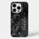 Personnalisez facilement ce boîtier de téléphone à motif de parties scintillant en métal brossé noir et glamour avec votre propre nom personnalisé.
