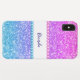Arrière - plan en faux parties scintillant rose et bleu avec accents faux diamants et monogramme personnalisable.