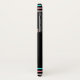 Coque iphone noir élégant, avec des illustrations graphiques d'une libellule abstraite pastel et des bordures turquoises, roses et rougies, en haut et en bas. Personnalisez le texte de couleur turquoise pour une idée cadeau très spéciale pour elle.
