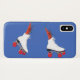 Patins à rouleaux blancs et crevettes Apple iPhone X, à peine là. Dessin surréaliste. Couleur arrière - plan personnalisée.
