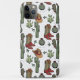 Cette boîte téléphonique de Noël de pays festif présente un motif d'illustrations occidentales dessinées à la main d'une couronne de pin avec bottes de cowboy, casquette de cowboy, baies sèches, cactus et ornements vintages de Noël parmi les étoiles et les mots écrits à la main, "Howdy Christmas". Arrière - plan blanc élégant.
