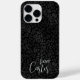 Elégant coque iphone de léopard noir avec typographie personnalisable dans une police de script tendance et personnalisée avec votre nom.