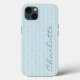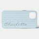 Ce boîtier de téléphone girly est doté d'un motif abstrait décoratif bleu clair et est personnalisé avec son nom.