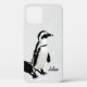 Pingouin noir et blanc moderne et artistique personnalisé iPhonecase. Un design élégant pour les amateurs de style artistique. Idéal pour les amateurs de nature ou d'oiseaux pingouins. Personnalisez-le avec votre prénom.