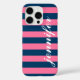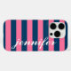 Coques Case-Mate iPhone Pink and Navy Stripes Custom Script Monogramme Nom