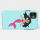 Caricature d'art de sirène rose d'une mignonne sirène à cheveux noirs et d'une queue rose sur un arrière - plan de couleur personnalisable.
