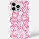 Customize this pink shell pattern iPhone 15 pro max case with your your name in a trendy modern CAP font in pink on white. It's so modern and beachy!