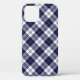 Cas de téléphone portable comportant un motif mignon de plaid de guingan de bleu marine et de blanc.