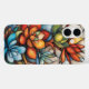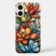 Des fleurs d'oranger stylisées aux tiges bleues profondes et aux ornements pointillés s'étalent vers le haut, élégantes et joyeuses, comme des fleurs qui atteignent la lumière de l'heure d'or.
