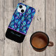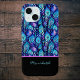 Coques Case-Mate iPhone Plumes de paon bleu violet sur monogramme noir