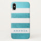 Vous cherchez un coque pour montrer votre nouvel iPhone X? Ce boîtier téléphonique chic et brillant est doté d'un motif rayé dans l'effet METALLIC PARTIES SCINTILLANT BLEU brillant et rayures blanches. Utilisez le champ de personnalisation facultatif pour ajouter un nom ou un texte de votre choix. VEUILLEZ NOTER : la parties scintillant est une image imprimée.