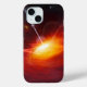 Le concept de quasars de l'artiste. Les quasars sont des régions lumineuses et dynamiques autour de trous noirs géants et actifs dans les centres galactiques. Bien qu'immensément puissants et visibles sur des milliards d'années-lumière, les quasars sont en fait assez minuscules, du moins comparé à toute une galaxie. Les quasars s'étendent sur quelques années-lumière, et leurs zones intérieures rejetant des vents à haute vitesse ne se comparent en gros que par la taille de notre système solaire. Il faut un faisceau de lumière environ dix heures pour traverser cette distance. Rendu par l'artiste de l'ULAS J1120+0641, un quasar très lointain alimenté par un trou noir avec une masse deux milliards de fois celle du Soleil.