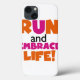 Si vous aimez courir, courir 5Ks, 10Ks, demi-marathons ou marathons, vous adorerez ce texte coloré en orange et rose chaud qui lit Run and Embrace Life! Courez et Embrace Vie T-shirts, sweat - shirts à capuche, magnets, boutons, cartes, autocollants, porte - clés, et beaucoup d'autres articles pour les coureurs qui aiment un design de course brillant et coloré!