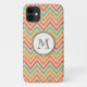 Un motif à rayures zig zag chevron arc-en-ciel tendance et élégant en crème, jaune, vert turquoise, orange pêche et rouge framboise, avec un monogramme personnalisable en cercle rond. Parfait pour montrer votre fierté, ou pour célébrer l'été !