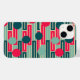 Ce boîtier téléphonique a un design moderne du milieu du siècle de rectangles extensibles en rose, turquoise et bleu avec des cercles superposés.