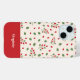 Un étui téléphonique avec un motif de hanche rose et ses baies rouges et feuilles verts sur un arrière - plan couleur crème pâle et, en bas, un prénom ou un texte personnalisable sur un arrière - plan rouge. Un beau cadeau pour un ami qui aime les baies.