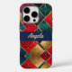 Rouge, or, bleu nuit et turquoise se marient pour faire un coque iphone riche. Belle et élégante. Personnalisez avec votre nom dans un groupe bleu de minuit au milieu.