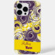 Ici, pour personnaliser, est votre coque bouclé et coloré orné d'un art numérique en spirale violet et blanc cassé sur un arrière - plan jaune profond. Remplissez le champ modèle avec vos informations, supprimez le ruban texte et le ruban texte non désirés ou cliquez sur "Customisez-le !" pour modifier le style, la taille et la couleur de la police.