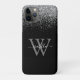 Coque iphone monogramme en parties scintillant noire et mince, élégamment orné de votre monogramme de script, prénom et initiale.