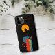 Minimalist artwork of a climber sitting on a colorful cliff beneath a glowing orange moon. The dark background and warm lunar glow create a peaceful atmosphere, symbolizing courage, solitude, and balance with nature.
