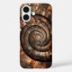 Cette oeuvre d'art numérique présente une spirale hypnotique formée par des **tuiles métalliques** complexes dans des tons de terre **bronze**, **cuivre** et **charbon de bois**. La spirale conduit l'oeil vers un point central de disparition, créant une puissante illusion de profondeur et d'infini. Les carreaux sont texturés pour imiter les matériaux réels, donnant une qualité tactile, presque tangible à la forme par ailleurs surréaliste. Le style artistique peut être classé comme **optique et surréaliste abstrait**, mêlant précision numérique et esthétique organique et rustique. Il s’agit d’une représentation visuelle de cycles, de temps ou de spirales de pensée, attirant le spectateur dans un espace méditatif ou philosophique.