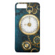Coques Case-Mate iPhone Steampunk Arrière - plan turquoise avec Gears