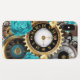 Coques Case-Mate iPhone Steampunk Clock and Turquoise Roses on Striped