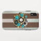 Coques Case-Mate iPhone Steampunk Clock and Turquoise Roses on Striped