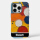 Ce capot de téléphone audacieux présente un style de peinture à l'huile d'impasto très texturé, avec des formes circulaires et rectangulaires en relief distinctes dans une palette vibrante de jaune, orange, rouge, bleu et blanc. Le design artistique et géométrique ajoute une touche tactile et colorée à votre appareil. Une barre noire élégante en bas offre la personnalisation avec un nom comme "Elizabeth"; si vous ne voulez pas un nom, vous pouvez le retirer et tous les autres éléments que vous n'aimez pas de l'outil de conception, en créant un véritable accessoire de smartphone sur mesure.