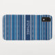 Ce boîtier téléphonique de Noël est décoré dans un style pull bleu et blanc rayé. Personnalisez-le avec un nom.