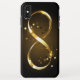 Or, bijoux symbole infini avec étoiles or sur un arrière - plan noir. Design avec étoile d'or.