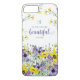 Boîtier de téléphone portable avec de belles images d'aquarelle jaune et violet fleurie entourant verset des écritures de Ecclesiastes 3:11, "Il a rendu tout beau en son temps." Conçu par Simply Scripture ; éléments de The Hungry JPEG.