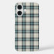 Étui téléphonique avec motif plaid rustique couleur turquoise, bleu marine et crème avec subtile tons vert mousse.