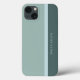 Élégant et moderne étui de téléphone de nom personnalisé avec des rayures verticales turquoises foncées, de couleur mate, turquoise clair, bleu bébé.