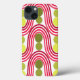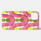 Ce boîtier téléphonique a un design moderne du milieu du siècle des vagues de canneberge et des cercles verts.
