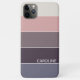 Saumon contemporaine, pêche pastel, pêche, violet, violet, violet et crème rayures motif. Avec place pour customiser ou personnaliser avec un monogramme ou des initiales de votre choix. Belle couverture moderne et cool pour le brancheur tendance et amateur d'art branché, amoureux de motifs artistiques qui veut protéger leur téléphone de la poussière et de la saleté, de l'usure et de la déchirure. Cette conception est disponible pour les coques de téléphones cellulaires Apple iPhone 6, 7, 8 Plus, 10 ou X, XR, XS, 11, 12, 13 Mini, 14, 15 Plus et Pro Max. Montrez votre style, regardez à la mode, et sentez élégant avec un design unique sur un accessoire mobile de votre choix.