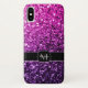 Personnalisez le faux coque iphone brillant avec votre initiale et votre nom. De belles parties scintillant brillantes scintillantes roses et violettes brillent. Photo de rose et violet pétille pas de parties scintillant réelle!
