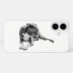 Ce coque protecteur présente un portrait discret et attentif aux lignes pointues en noir et blanc. Minimal, fort et parfaitement adapté au style de chute.