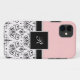 iPhone fait sur commande de monogramme 5 cas avec le motif de damassé et la couleur rose d'arrière - plan que vous pouvez changer. Personnalisez en ajoutant vos initiales ou votre nom.