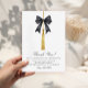 A modern coquette themed graduation thank you card featuring a graduation cap tassel adorned with a chic black watercolor bow. With its minimalist yet stylish design, this elegant grad thank you card is perfect for expressing appreciation to your graduation party guests, classmates, teachers, and family while adding a fashionable, on-trend touch to your graduation stationery.